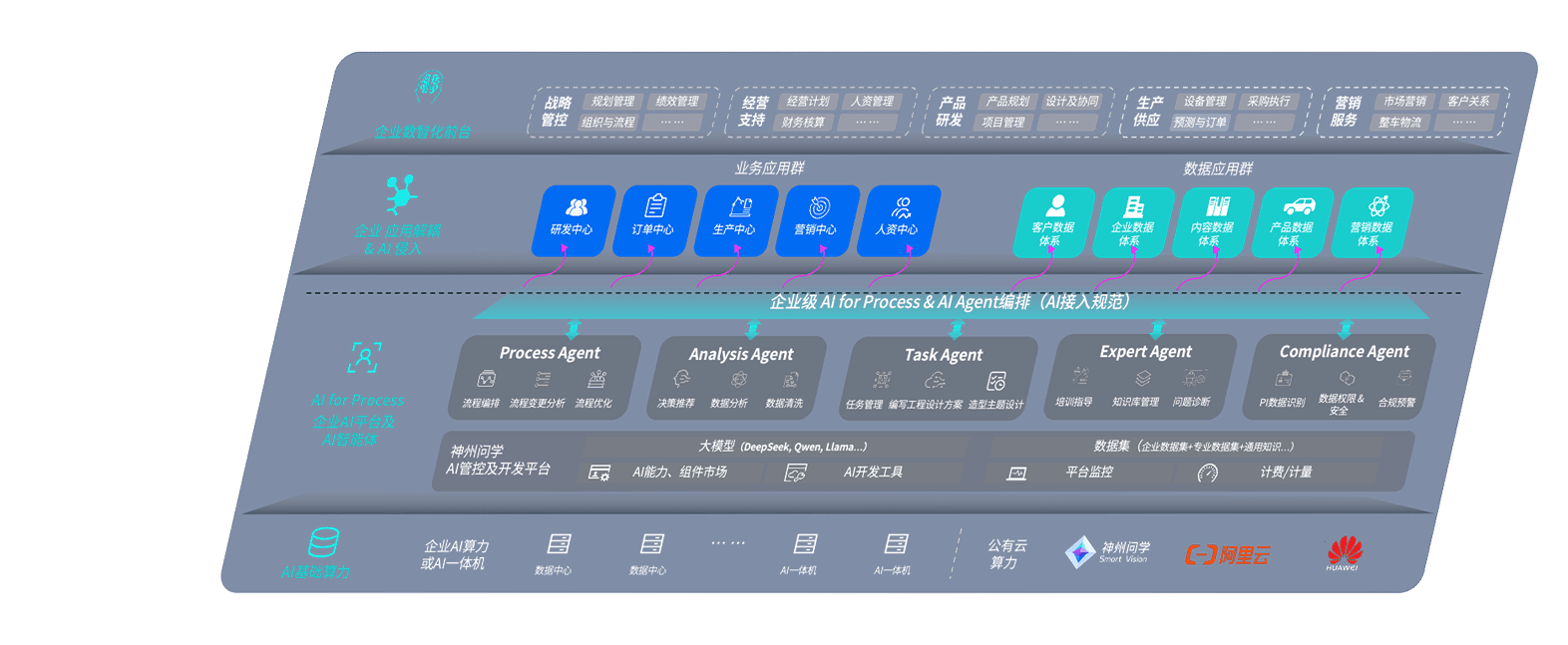 壹号国际问学智车解决方案是一套基于AI技术的汽车行业智能化系统,,,,覆盖从底层算力到顶层AI应用的全栈方案。。。。方案由算力层、、模型层和应用层组成:算力层,,方案支持多种一体机配置,,,,具备云端灵活部署、、、、多云适配以及动态优化计算资源的能力;模型层,,壹号国际问学平台版提供了企业级AI应用一站式构建与管理平台,,,,支持基于后训练强化技术的汽车企业专属模型的训练、、、、评测和运营;应用层,,,,壹号国际问学DeepSeek版提供包括超级员工、、、智能招采、、、智能营销、、、智能客服、、、、AI for BI等一系列解决方案,,,可助力汽车行业实现数字化转型,,让管理更智能、、、响应更敏捷。。。。